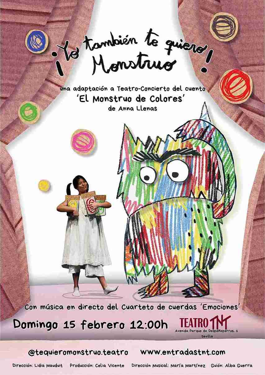 ‘¡Yo también te quiero, Monstruo!’ es una adaptación teatral con música en directo del cuento ‘El Monstruo de Colores’ de Anna Llenas. Durante la obra, iremos desenredando el lío de emociones que se ha hecho el monstruo con ayuda de Nuna, su mejor amiga, y la música.